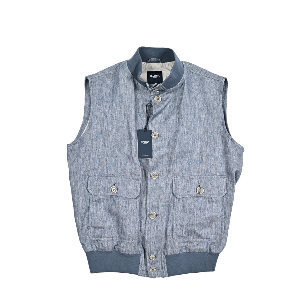 バルバ BARBA 【2026年 春夏新作】 麻ベスト ブルゾン 春夏 メンズ ライトアウター リネン 100% ブルー イタリア ブランド MADE IN ITALY 82,500 ~