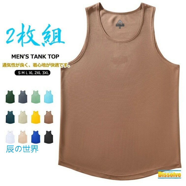 【送料無料】2枚セット タンクトップ メンズ 筋トレ トレーニングウェア ノースリーブ 無地 吸汗 速乾 ジム サッカー テニス フィットネス スポーツ 涼しい トップス 下着 運動会 ランニング インナー イベント ユニフォーム ダンス チーム 体育館 父の日 3,990 ~