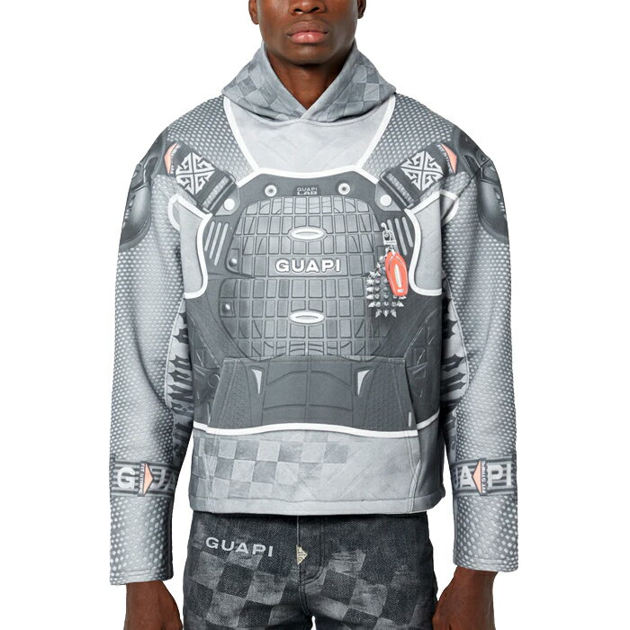 【最短即日発送】 GUAPI CLOUD GREY RACER HOODIE グアピ クラウド グレー レーサー フーディー 長袖 パーカー レース アーマー プリント ストリート メンズ グレー S M L サイズ オンライン 29,700 ~