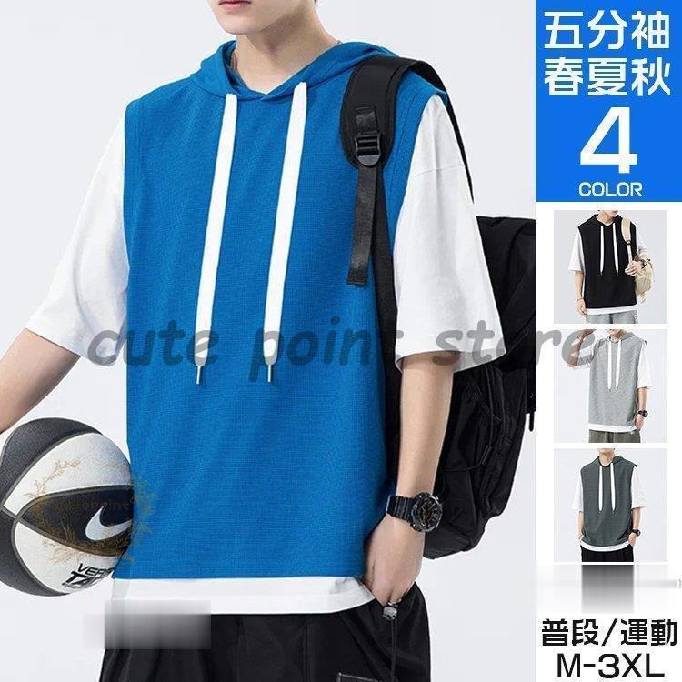 無地パーカー メンズ 半袖 パーカー トップス プルオーバー 夏 サマー 重ね着風 夏服 メンズ服 スポーツ お兄系 夏服 メンズファッション 4,790 ~