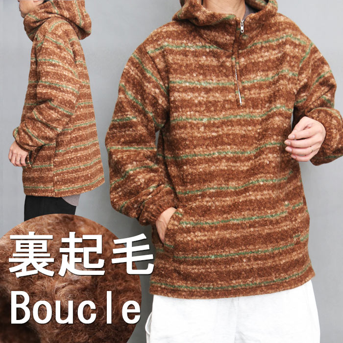 woodwhichflowsのご紹介シンプル だけどちょっと違った拘りやヒネリを効かせたアイテム。 wood which flows はそんな洋服を提供するメンズファッションブランドです。 10代 、20代 に向けた トレンド 感のあるファッションから、30代、 40代 、 50代 だから楽しめる シンプル + アルファ のあるデザイン。 お洒落 なだけでなく リラックス を追求した ビッグシルエット系 アイテム や ドルマン は当店名物として大変 人気 のある アイテム です。 メンズ に限らず レディース の方にも着ていただけるよう、フリー を始めS、 M 、 L、 XL 等、幅広い サイズ をご用意しておりますので 男女兼用 としておすすめ です。 春 、 夏 、 秋 、 冬 の オールシーズン を通して、 旅行 や 観光 、お出かけ 、 さらには カジュアル な 通勤 、大学 への 通学 にも使える お洒落 な 服 を提供。 伸縮性 や 機能性 が充実した商品も多数用意しておりますので スポーツ や ジム、 ダンス、 アウトドア といった アクティブ なシーン、 部屋着 、ルームウェア 、 クリスマス 、 誕生日 、 父の日 、 母の日 の プレゼント に送りたくなるような バッグ 、 帽子、 アクセサリー 、 シューズ などの ファッション雑貨 まで、幅広く商品を展開。 ここにしかない オリジナル アイテム も多数!ゴルフ ウェア ヨガ フィットネス キャンプ ランニング 商品等の取り扱い希望や、高身長 低身長 の方、細身さんや ぽっちゃり さん等からのご意見、ご要望など可能な限りお応えさせていただけるようさらなる商品アップ数を目指しております。 合わせているアイテム: INNER PANTS 合わせているアイテム: INNER PANTS 合わせているアイテム: INNER PANTS 合わせているアイテム: INNER PANTS 合わせているアイテム: INNER PANTS 合わせているアイテム: INNER PANTS size総丈胸囲肩幅アームホール袖丈ゆき丈 フリー72.5118495562- ------- ------- 素材1素材2素材3裏地生地の厚さ伸縮性透け感 ポリエステル100%--起毛標準ありなし 商品コメント 立体感が魅力のボリュームネックパーカーが登場。 首元を包み込むボリュームネック&フードが、シルエットに奥行きを与えつつ小顔見えも叶えるデザイン。 ハーフジップ仕様で、開閉によってカジュアルにも抜け感スタイルにも表情を変えられる万能アイテムです。 生地には、毛足がくるんと丸まったブークレー生地(裏起毛)を使用。 ふわっとあたたかく、思わず触れたくなるような愛らしい質感が特徴。 秋冬らしい季節感をしっかりプラスしながら、上品でナチュラルな風合いが大人カジュアルにぴったりです。 シルエットは、ゆる過ぎない絶妙なビッグシルエット。 体型カバーしながらもだらしなく見えないバランスで、抜け感とこなれ感を自然に演出。 たっぷりとしたフードが後ろ姿までお洒落に決めてくれます。 さらに、落ち着いた配色の秋冬仕様ボーダーデザインがアクセントに。 生地自体の表情も豊かで、1枚で主役になる存在感。 ゆったりあたたかく、デイリーからアウトドアまで幅広く活躍するパーカーです。 ×メール便不可 Nスタッフコメント(170cm53kg:写真スタッフ) 窮屈感なくゆったりと着られるサイズです。 ヒップが隠れるくらいの長さです。 秋冬カラーのボーダーに、ボリューム感たっぷりのネックデザイン、ブークレー特有の風合いといった個性を重ねた大人のお洒落を楽しませてくれる1枚ですね。 Kスタッフコメント(174cm63kg) 全体的に問題なく着られるサイズ感です。 裏起毛のブークレー生地が、ほっこりと優しい肌触りで着心地バッチリ!秋冬の防寒対策のひとつとしても活躍が期待出来ますね。 製品のご注意 ※サイズは、平置きで実寸サイズを測っているため多少誤差がでる場合がございます。 メーカー表記とは異なります。 単位はcmです。 出来るだけ実際のお色に近づけておりますがモニターの違いや照明により、実物と画面では、見た目の色に多少違いがございます。 ご了承下さい。 当商品は機械による生産過程において、どうしても"生地を織る際の糸の継ぎ目"や多少の"ほつれ" などが生じている場合がございますが、品質上の問題ではございません。 また、生地の織りに他繊維が混紡している場合もございます。 漂白剤は使用しないでください。 染の関係で多少の色飛びが出る場合がございます。 デザイン上切りっぱなしになっている商品は多少切りムラが出ます。 ご了承の上お買い物求め下さい。 送料・配送丸わかりガイド ボリュームネックパーカー メンズ 裏起毛パーカー プルオーバーパーカー 長袖パーカー メンズファッション ブラウン系 茶 秋服 冬服 メンズ トップス パーカー プルオーバー ブークレー 裏起毛 暖かい 極暖 防寒 ビッグ 大きめ オーバーサイズ 体型カバー 5,940 ~
