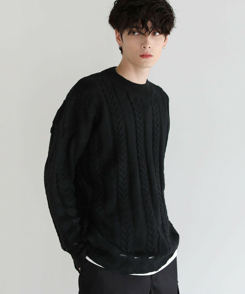 ビッグシルエット裾ダメージケーブルニット/アストロノミー(ASTRONOMY) 5,049 ~