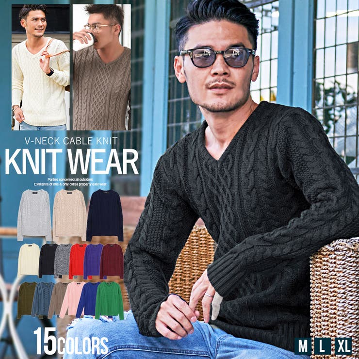 SILVER BULLET ニット セーター メンズ ケーブル編み Vネック 長袖 ニットソー トップス インナー ニットセーター ケーブルニット リブ ストリート カジュアル ファッション ルームウェア プレゼント M L XL 白 黒 秋 冬 Vic 4,290 ~