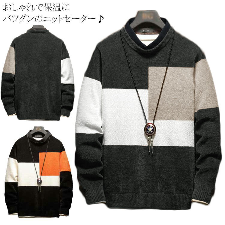 メンズセーター ラウンドネック ニット メンズ 冬物 大きサイズ セーター ニットセーター 切替え トップス 厚手 秋冬 冬服 S−5XLサイズ!トレロセーター メンズファッション 学園風 2,670 ~