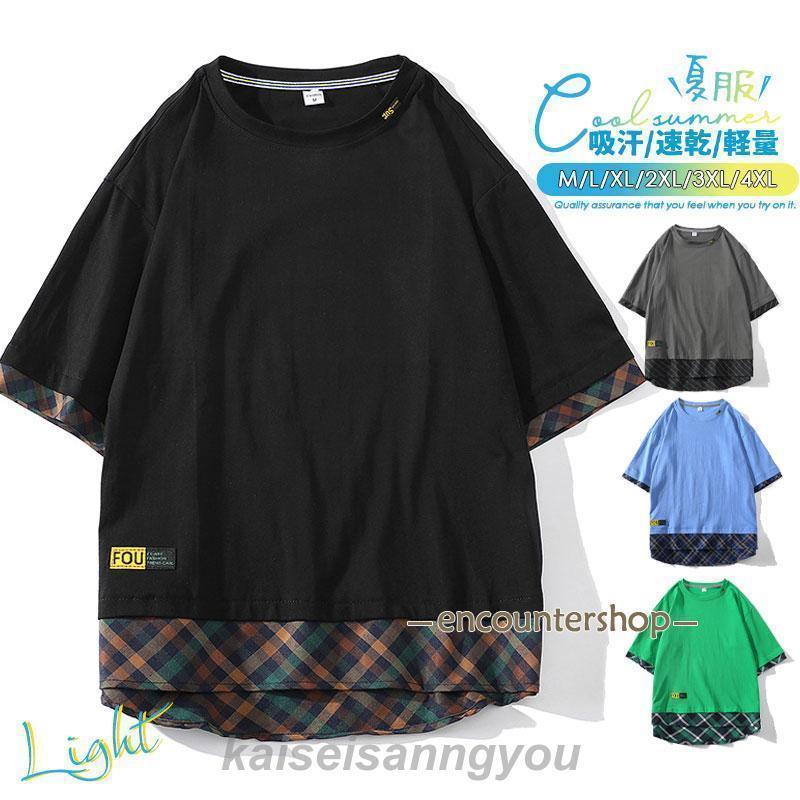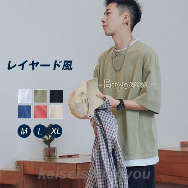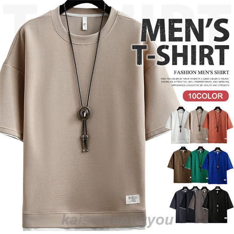 Tシャツ メンズ 無地 半袖Tシャツ ティーシャツ ワッフル トップス 通気性 夏服 重ね着風 お兄系 二枚目 3,666 ~