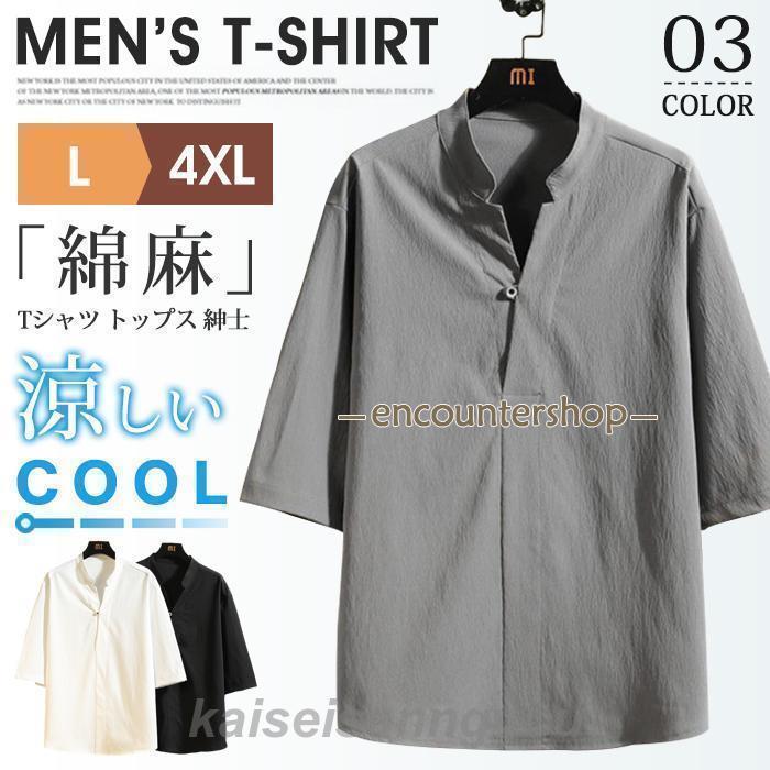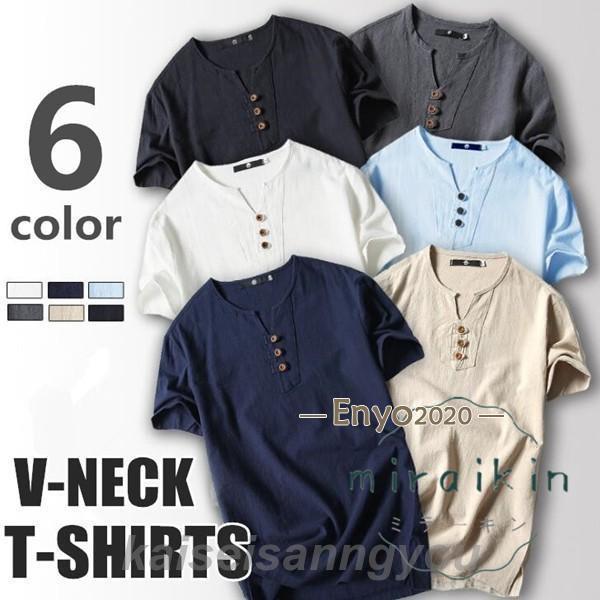 Tシャツ メンズ Vネック 半袖 カットソー 無地 Tee トップス カジュアル 涼しい リネン 麻 カジュアルシャツ 綿麻 夏 ボタン2つ ボタン3つ 20代30代40代50代 4,224 ~