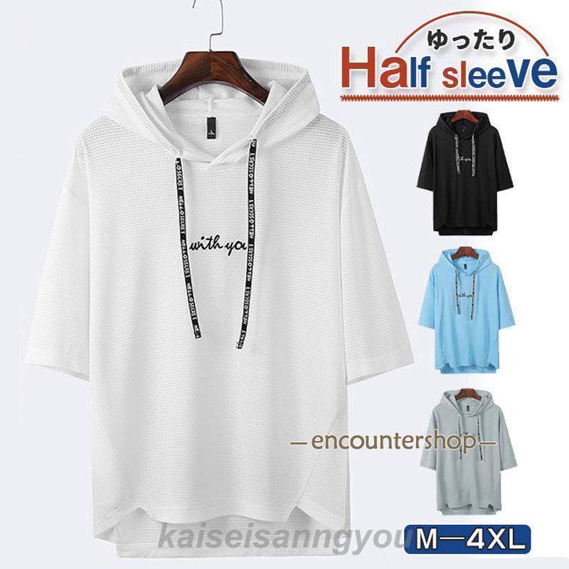 ナイロンパーカー 冷感 半袖 メンズ 夏パーカー 無地 プルオーバーパーカー ラグランスリーブ tシャツ 涼しい ゆったり 3,390 ~