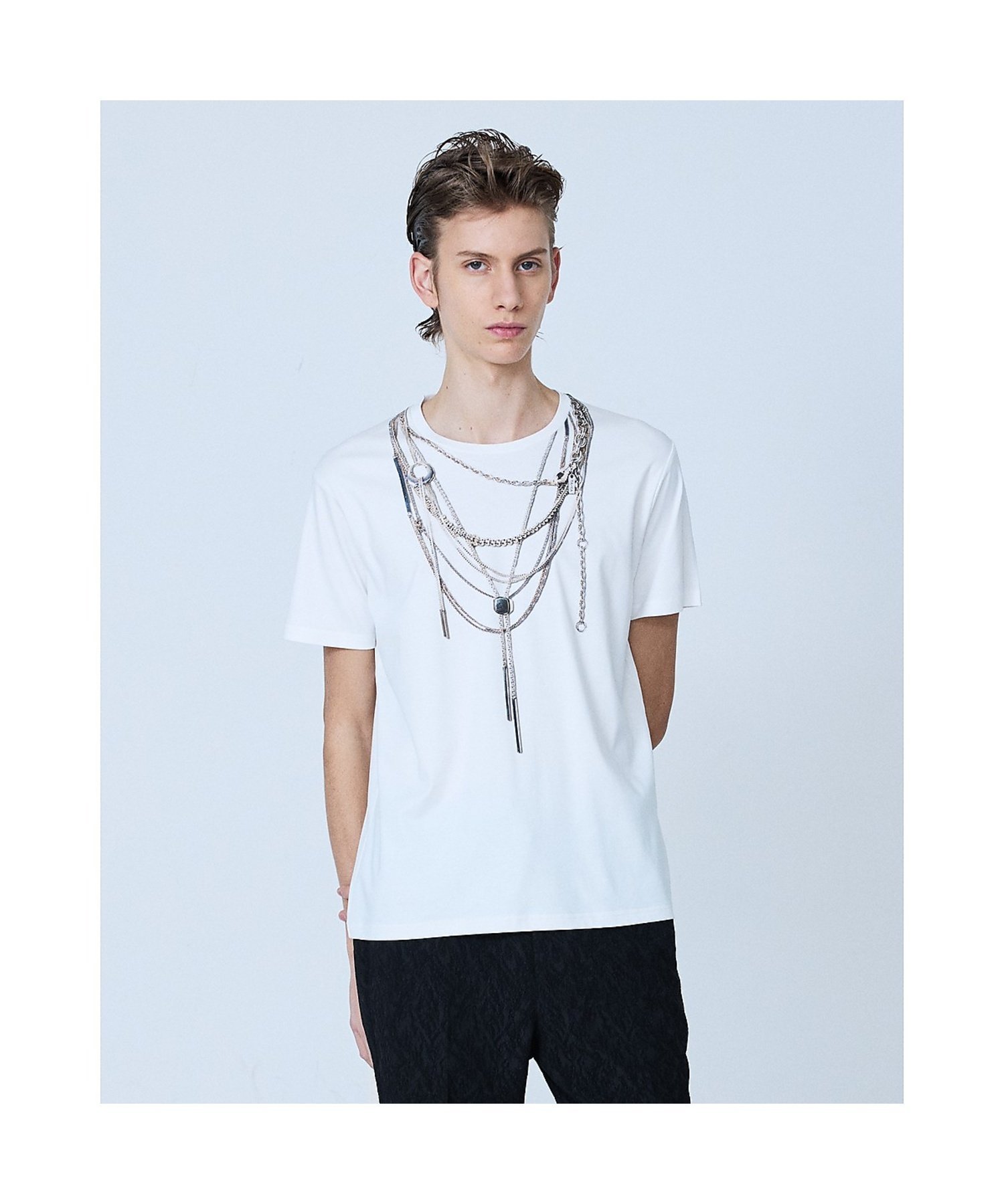 5351POUR LES HOMMES 【YArKA*5351】ネックレス プリント 半袖 Tシャツ【予約】 ゴーサンゴーイチプールオム トップス カットソー・Tシャツ ブラック ホワイト【送料無料】 19,800 ~