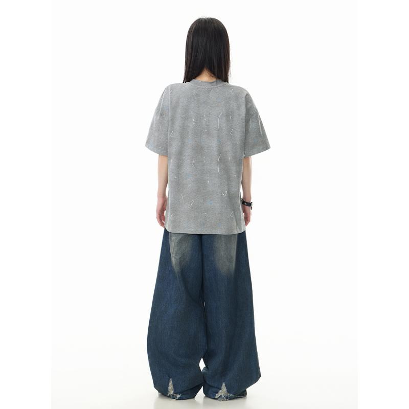 Tシャツ 男女兼用 ルーズフィット 全綿 半袖 カットソー 夏物 トップス 絞り染め ダメージ加工 普段使い 6,291 ~
