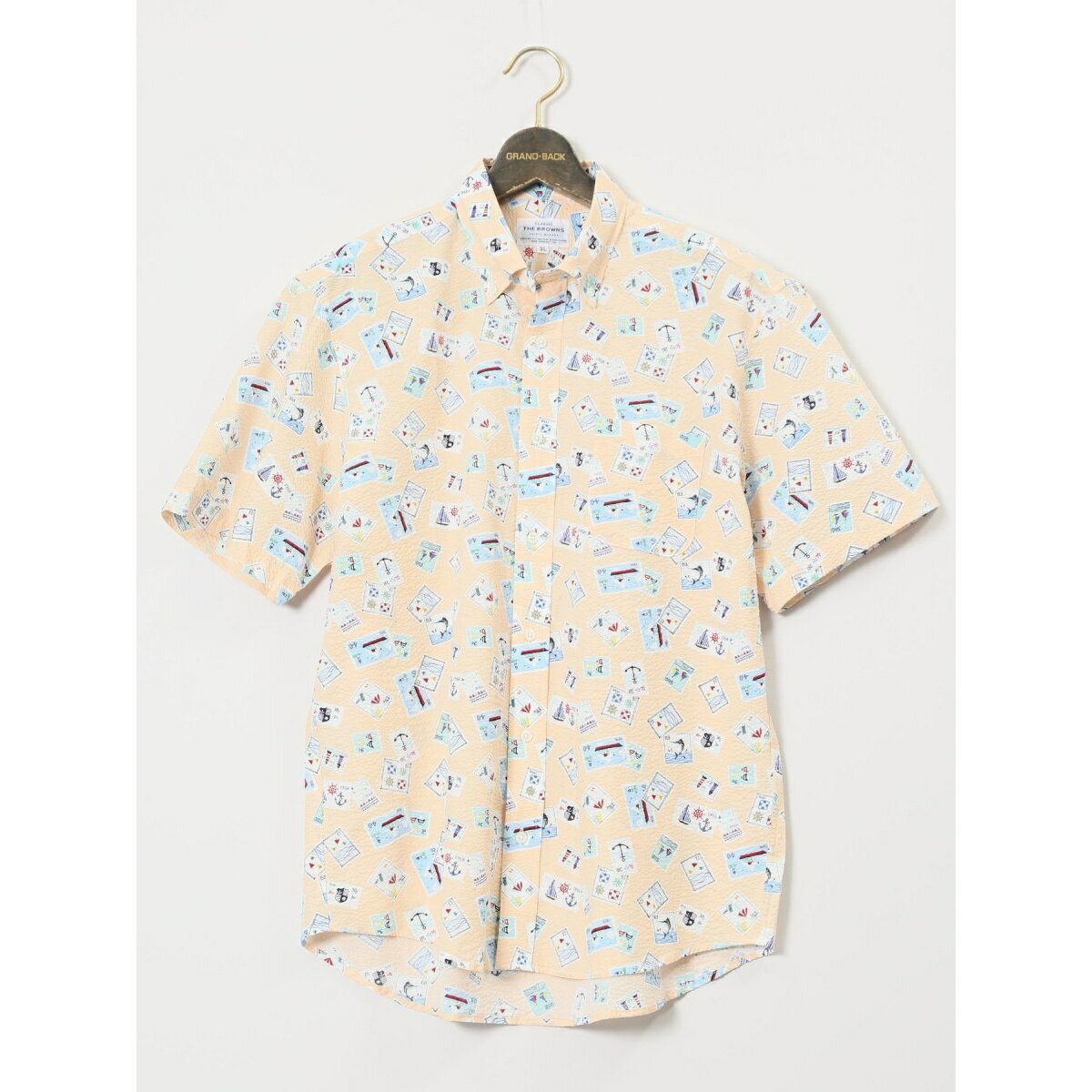 [型番:110135163500537]【大きいサイズ】CLASSIC THE BROWNS日本製 綿リップル ボタンダウン半袖シャツ■素材特徴コットン100%のリップル生地にプリント加工を施しています。 塩縮加工による凹凸とナチュラルなシワ感が特徴。 薄手で軽くサラッとした着心地が特徴です。 ■機能【マシンウォッシャブル】洗濯機で洗えるので、清潔に着ていただけます。 【吸水速乾】汗を素早く吸収して乾かし、サラッとした着心地をキープ。 ■デザイン着映え度抜群、コーディネートの主役になるボタンダウンの半袖シャツです。 海のモチーフを切手にした夏らしい総柄プリントがポイント。 左胸ポケット付きで利便性にも優れています。 ■シルエット身体のラインを拾わない余裕のあるシルエットで、ゆったりと着用していただけます。 裾部分はラウンドカットなので、タックインとタックアウト、双方の着こなしに対応します。 ■若木織物70年前、日本有数の織物産地の遠州地方で生地作りからスタートした若木織物。 産元、OEM生産と幅を広げ、真面目にシャツ作りに取り組む中で得た、100%日本製の高品質な生地、制作工程で何度も繰り返す微調整から生まれる着心地、色褪せることのないデザインは、着る人に安心感を与えます。 シーズン:夏展開カラー:オレンジ・サックス・紺(ネイビー)*アテンションタグ・洗濯ネームを御確認の上、着用又は取り扱い下さい。 *光の当たる場所や高温多湿になる場所での保管は避けて下さい。 *使用の有無に関わらず、経年劣化は進行いたしますのでご了承下さい。 *生地の裁断・縫製方法により、写真と同様の柄が出ない場合がございます。 *閲覧デバイス・環境により質感・色味に誤差が生じる場合がございます。 *サイズ表に記載の寸法は実寸表記となり、商品に付属の下げ札等に記載の寸法とは異なる場合がございます。 ■カラー:20オレンジ、73サックス、75紺2L首回 44/身丈 83/肩巾 54/バスト 128/胴回 122/袖丈 27/袖口巾 22/裾巾 623L首回 46/身丈 85/肩巾 56/バスト 136/胴回 132/袖丈 28/袖口巾 23/裾巾 674L首回 48/身丈 86/肩巾 58/バスト 144/胴回 142/袖丈 29/袖口巾 25/裾巾 725L首回 50/身丈 89/肩巾 60/バスト 152/胴回 150/袖丈 30/袖口巾 27/裾巾 76※( )で表記されている数字はヌードサイズです。 ヌードサイズとは衣服を身につけない身体のサイズです。 お客様ご自身の身体サイズと比較してお選びください。 ■素材: コットン100% ■お手入: >>商品のお取り扱い方法 ■原産国: 日本【大きいサイズ】【日本製】【綿リップル】【吸水速乾】ボタンダウン半袖シャツ/グランバック(GRAND-BACK)20オレンジ73サックス75紺画面上と実物では、多少色具合が異なって見える場合がございます。