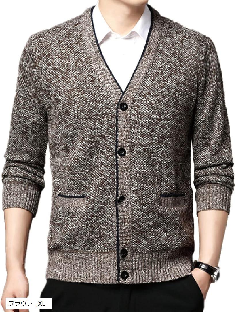 カーディガン メンズ ニット ビジネス カジュアル 裏起毛 (ブラウン, XL) 6,680 ~