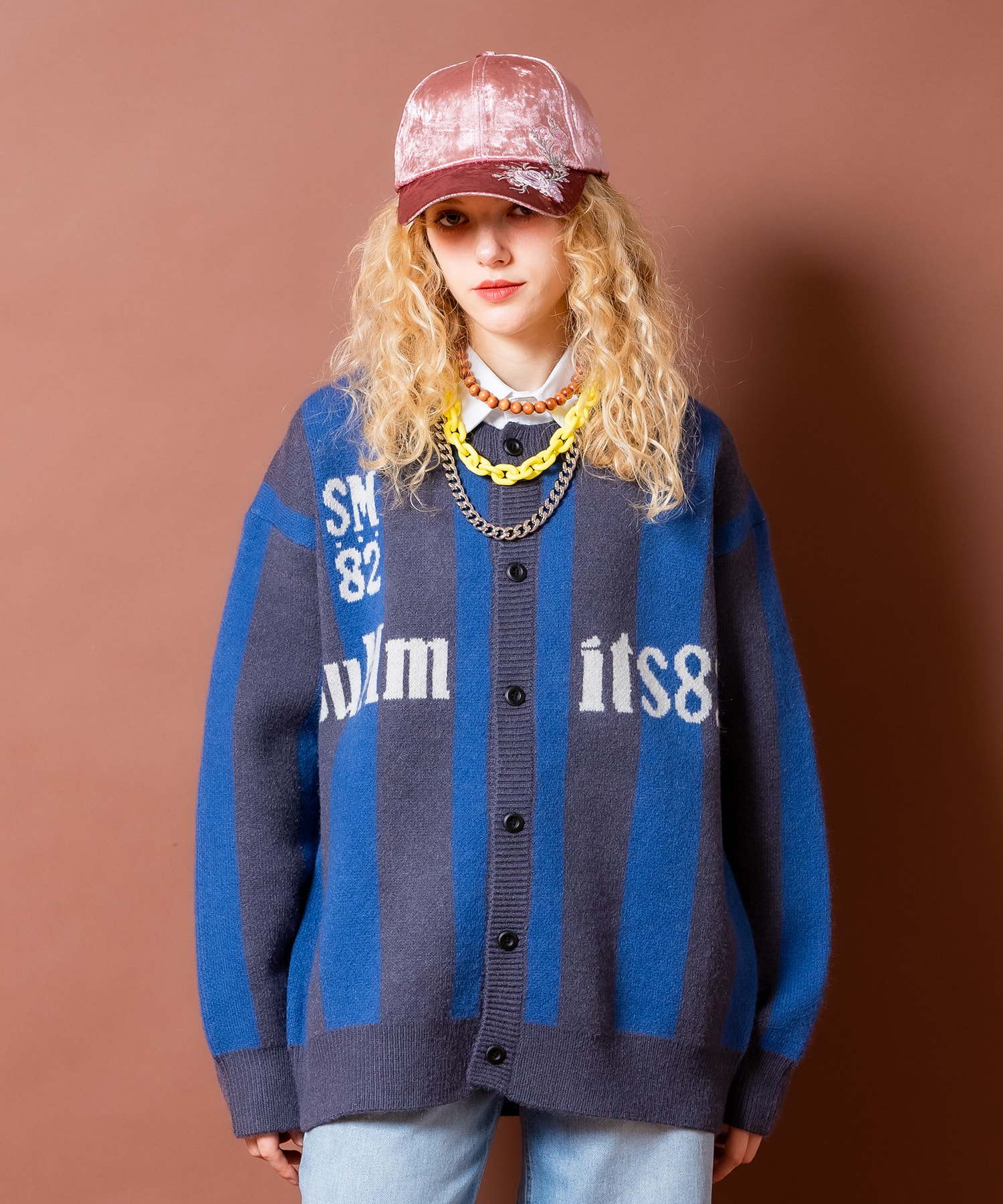 ブロードシャツ襟フェイクレイヤードゲームシャツテイスト極太ストライプ柄ニットカーディガン / ユニセックス オーバーサイズ昨今一気に盛り上がりを見せるイットなブロークコアスタイル。 Y2K、90sや古着コーデにさらりとスポーツミックスしたい本命中の本命のサッカーシャツ/ユニフォームは絶対に押さえておきたい一枚。 ダボっとラフにストリートな感覚でとりいれられるオーバーサイズ/ビッグシルエットがメンズレディース問わずユニセックスで着用出来る一品。 超肉厚のハイゲージアクリルニットでの前開きボタンカーディガンをベースに、極太ストライプ柄&チームロゴテイストのプリントデザインでサッカーシャツライクなゲームシャツニュアンスを大胆ミックス。 よりクラシカルかつ上品にスタイルをアップデートさせてくれるコットンブロードのシャツ襟をネックにフェイクレイヤードしたエレガントな『遊び心』もグッドムード。 韓国ストリートファッションをはじめとし、90s/Y2Kスタイル、古着ミックス、アメカジやワークスタイルなどのクラシックムードなスタイルはもちろん、スケーター、ストリートスタイル、グランジといったカジュアル全般、さらにはモードスタイルやキレイメなどのハズシアイテムやアクセントとしても◎『カラー』ブルー / 青【a.p.o.v. / エーピーオービー】a point of view...[日本人の視点]からセレクトする『韓国ストリートファッション』がコンセプト。 韓国ストリートで日々更新されてゆくトレンドの移り変わりを眺めながらぼんやりと視点を合わせて国内外問わずにセレクト。 ぼーっと韓国ストリートシーンからインプット、日本人視点でアウトプット。 ■サイズ■onesize身幅:62そで丈:57肩幅:53.5総丈:69■素材■アクリル:100%■カラー■ブルー■モデル■174cm166cm a.p.o.v. ブロードシャツ襟フェイクレイヤードゲームシャツテイスト極太ストライプ柄ニットカーディガン / ユニセックス オーバーサイズ 13,999 ~