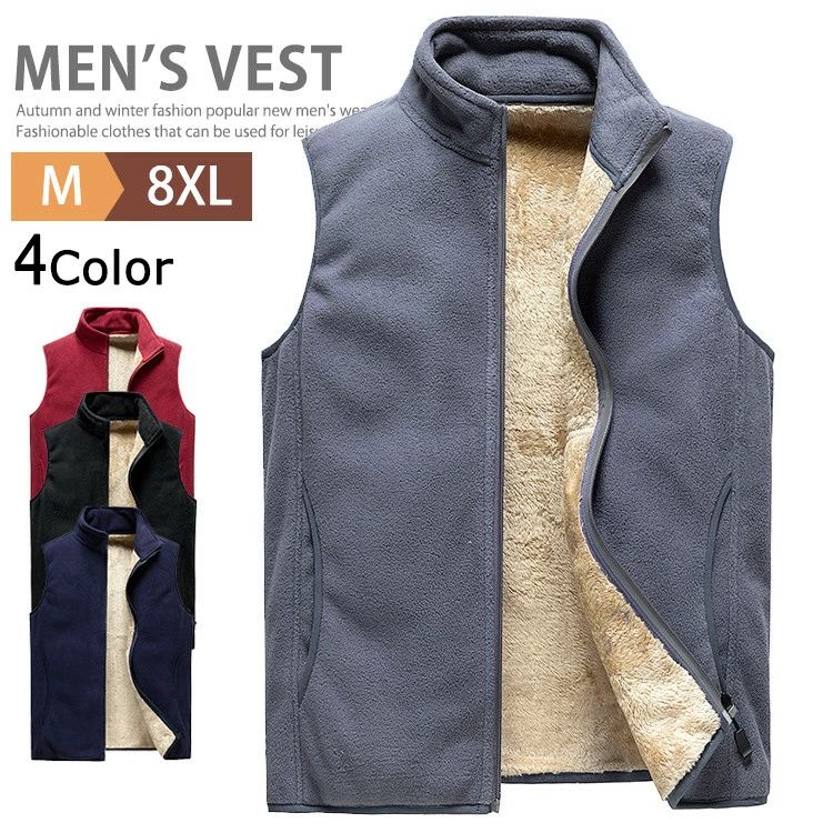 フリースベスト メンズ 暖かい 裏起毛 ベスト カジュアルベスト ボアベスト ボアフリース あったか 厚手 防寒ベスト ビジネス インナーベスト アウター トップス スポーツウェア ゴルフウェア キャンプ ルームウェア 登山 釣り 旅行 無地 大きいサイズ 4,790 ~
