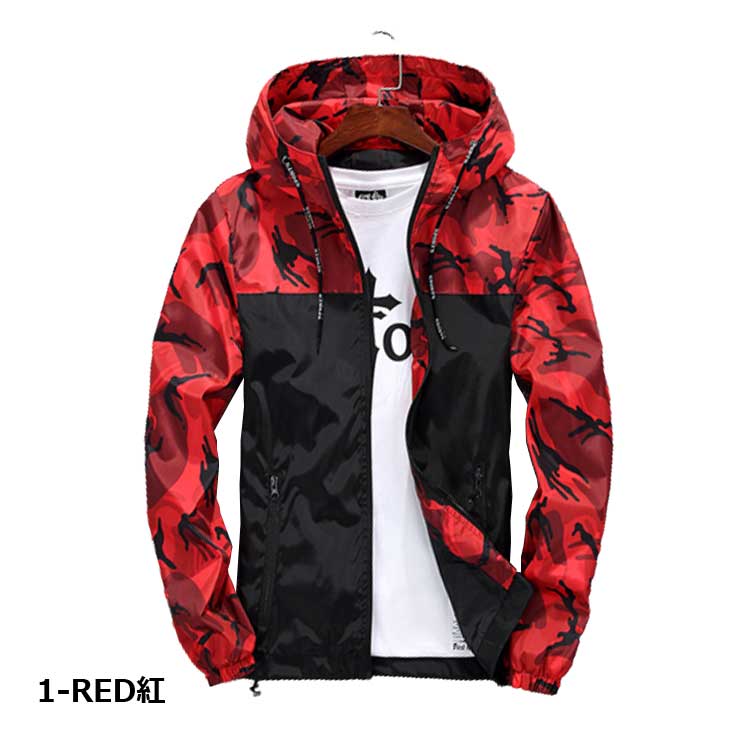 【現品処分セール】迷彩 ウィンドブレーカー マウンテンパーカー 防風 ジップアップ メンズ 春秋 バイカラー フード付き 4color M-5XL 1,979 ~