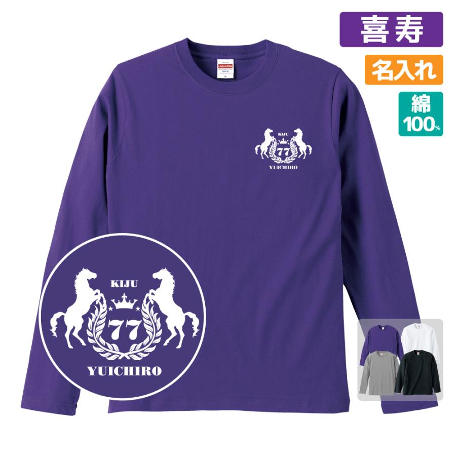 喜寿祝い プレゼント 長袖 Tシャツ 名入れ無料 男性 女性 【馬 エンブレム】 Sサイズ Mサイズ Lサイズ LLサイズ 3,800 ~