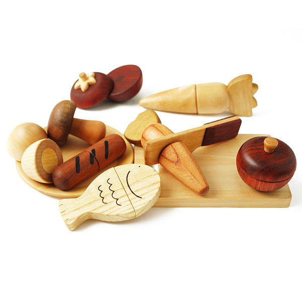 「森のささやきシリーズ」は天然素材にこだわっています。 塗料は一切使用せず、パーツや仕上げオイルも自然のままのものを使用しています。 世界中で食用として用いられるオイルなので、お子様がなめても安心です。 世界中から集めた天然木は、それぞれの木が育った地方の気候や土壌によって、異なる神秘的な色合いや木目、香りを感じることができます。 天然木には抗菌効果があり、子どもの敏感な肌に優しいばかりでなく、情緒の健やかな成長にも寄与すると言われています。 我慢できなくなったり、怒ったり、泣いたり、時には暴力になったり…このような子どもの心に温かさを与え、落ち着きと優しさを与えてくれます。 商品 : W15 x D10 x H1.2 cm (まな板), Φ5.5 x H4.2 cm (トマト)材質 : カバ, プライ, サペリ, パドック, 他対象年齢 : 3 才〜 【最大2000円オフクーポン16日1:59迄】森のささやきシリーズ Play chef 14,796 ~