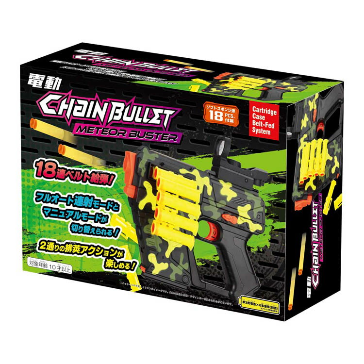 迫力のベルト給弾が楽しめるチェインバレットシリーズ!電動フルオート連射モードとマニュアルモードが切り替えられる!2通りの排莢アクション切替可能!吸盤付ソフトスポンジ弾18発薬莢18個(単三電池×6本使用:別売)対象年齢10歳以上●商品サイズ(cm)幅約24×奥行約7×高さ約18●商品重量約0.8kg●材質ABS、PVC、PE、PP、EVA(検索用:スポンジ弾 ピストル ライフル トイガン サバゲー 4991901439302)最強翌日配送対象商品に関するご案内 最強翌日配送対象商品・対象地域に該当する場合は最強翌日配送マークがご注文カゴ近くに表示されます。 最強翌日配送可能なお支払方法は【クレジットカード、代金引換、全額ポイント支払い】のみとなります。 下記の場合は最強翌日配送対象外となります。 ・15点以上ご購入いただいた場合 ・時間指定がある場合 ・ご注文時備考欄にご記入がある場合 ・決済処理にお時間を頂戴する場合 ・郵便番号や住所に誤りがある場合 ・最強翌日配送対象外の商品とご一緒にご注文いただいた場合 ・お届け先住所文字数が40文字以上の場合 メテオバスター TY-1134スポンジ弾 ピストル ライフル トイガン サバゲー 友愛玩具 【toy】 2,730 ~