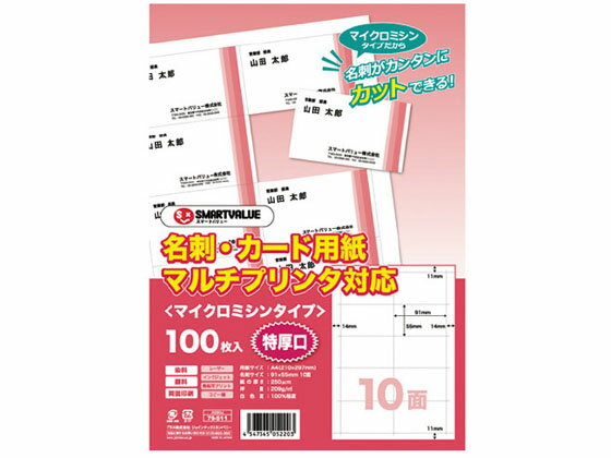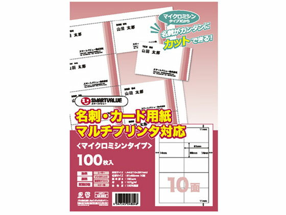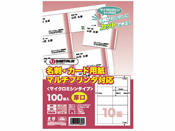 【レビュー投稿で100円OFFクーポン】【お取り寄せ】スマートバリュー 名刺・カード用紙 クリアカット 厚口 100枚 A059J 汎用 名刺用紙 プリント用紙 4,599 ~