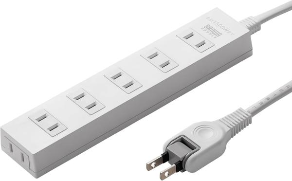 機器のコードがコンセントに届かない場合などに、電源を延長するためのコードです。 極性のある2ピン式プラグ・3ピン式プラグでも使用できます。 直径10mmの吊り穴を配したシリコン製のタグが付属しており、フックなどに引っ掛けることが可能。 トラッキング防止プラグやホコリ防止シャッターで使用時の事故を防ぎ心配なく使えます。 ※3ピン式プラグ使用時、アースは機能しません。 機器のコードがコンセントに届かない場合などに、電源を延長するためのコードです。 差込口は1個口で、極性のある2ピン式プラグ(左右のピンの幅が異なるタイプ)・3ピン式プラグも接続できる構造になっています。 ※3ピン式プラグ使用時、アースは機能しません。 電源プラグに極性はありません。 接続機器で極性を合わせる必要がある場合、コンセントの長い方の穴と電源プラグの目印線側を合わせて差し込んでください。 使用しない際に差込口へのホコリの侵入を防止する「ホコリ防止シャッター」を装備しています。 差込口の一部には耐熱性に優れた熱硬化性樹脂を使用しており、万一の発熱の際にも融解しにくく、電気火災の防止に有効です。 直径10mmの吊り穴を配したシリコン製のタグが付属しており、フックなどに引っ掛けることができます。 電源コードには一般社団法人日本配線システム工業会規格(JWDS0010)に適合した二重被ふくコードを採用しており、断線や被ふく破れによる感電・火災の防止に有効です。