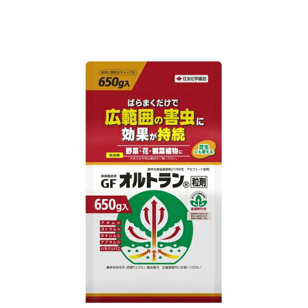 商品の特徴 住友化学園芸 オルトラン粒剤650g袋 園芸薬品 粒剤 害虫対策 希釈不要 ●本剤は吸汁性害虫(アブラムシ等)及び食害性害虫(ヨトウムシ、アオムシ等)に効果のある浸透移行性殺虫剤です ●効果が持続するので、広範囲の園芸害虫の防除に適しています ● 家庭菜園・草花・背の低い庭木・鉢物などの根元に散布する他に、植え穴にまくなどの利用法があります 製品仕様 ●内容量:650g JANコード:4975292603405 住友化学園芸 オルトラン粒剤650g袋 園芸薬品 粒剤 害虫対策 希釈不要 [4975292603405] 1,149 ~
