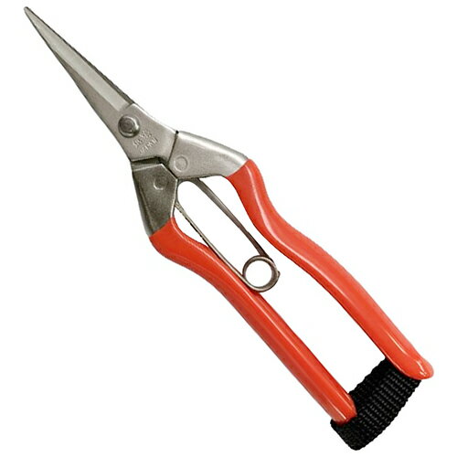 切れ味を追求した果樹・庭園などでご使用いただける梨用芯切鋏です。 ●【用途】芯切り・収穫作業。 ●【機能・特長】刃先が丸くなっているため、収穫する際に実を傷つけにくくなっております。 切断能力目安は若枝4mm程度になります。 トマトなど傷付きやすい野菜や果樹のお手入れや収穫に適しているほか、盆栽の剪定にもご使用いただけます。 ●【材質】刃:炭素鋼。 止めバンド:PP。 グリップ:PVC。 ●全長:165mm。 ●刃長:32mm。 ●重量:約85g。 ●対応バネ:A-102。 ●鋏を半掛りの状態で切ろうとしないでください。 また、切断時に横にこじることで刃を傷める可能性があります。 針金や硬いものに使用すると刃が欠けることがあります。 目的にあった鋏を使い分けてご使用ください。 ●新しい鋏は馴染むまで1か月ほどかかります。 枝を直角に切るよりも斜めに切るほうがと楽に切れ、刃の持ちも長くなります。 ●刃先を顔や肌、人に向けないでください。 ご使用後はお子様の手の届かない安全な場所に保管してください。