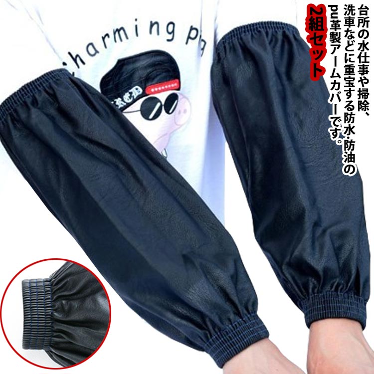作業用 アームカバー 手首リブ付き 汚れを防ぐ 家事 袖カバー 撥水 PU革 防油 カフスリブ付き 腕カバー 2組セット 農作業 防水 2,650 ~