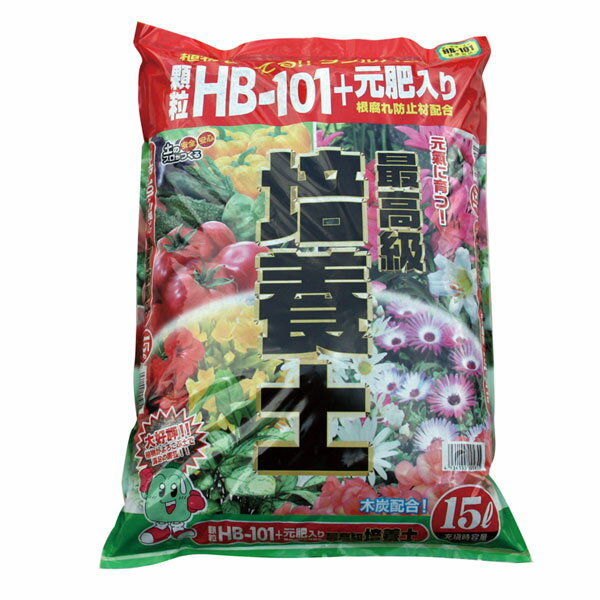 顆粒HB-101+元肥入り 最高級培養土15リットル入り2袋セット(木炭配合!)HB-101のフローラ社と提携して開発された、品質にとことん拘った高級培養土。 ハーミキュライト、ヒートモス、腐葉土、炭などの自然に優しい天然素材を主原料としてブレンドしたオールマイティな園芸培養土で、通気性・排水性・保水性・保肥性に優れています。 HB-101顆粒は、杉・ヒノキ・松・オオバコより抽出した植物性活力液をキャリアに吸着させたもので、農業分野でも広く活用されています。 植物の成長に応じてHB-101活力液の併用をオススメします。 根腐れ防止剤(ゼオライト)配合。 主な配合原料:赤玉土、バーク堆肥、鹿沼土、腐葉土、軽石、バーミキュライト、ピートモス、ココハスク、パーライト、木炭、顆粒HB101、他HB-101の働き:○植物本来の働きを活性化させる天然の栄養成分ですので、野菜・花・米・果樹・観葉植物・菊・蘭・盆栽・山野草・茶・キノコ・ハーブ・バラ・芝生・樹木等、あらゆる植物に効果を発揮します。 ○土壌改良の役目も果たし、有効菌を増やし連作障害を減らし、植物を元気に育てます。 ○根の活力を高めると共に、病原菌の抑制効果があります。 1袋15リットル入り、約6.5kgです。 ※こちらの商品は4袋以上から送料お見積りとさせていただきます。 顆粒HB-101+元肥入り 最高級培養土15リットル入り2袋セット(木炭配合!)の栽培ガイド寒肥 顆粒HB-101+元肥入り 最高級培養土15リットル入り2袋セット(木炭配合!) 2,833 ~
