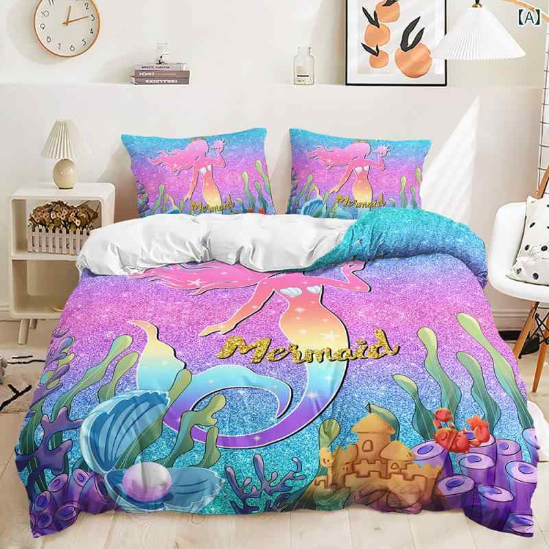 ・カテゴリ: ベッドリネン・染色加工: デジタルプリント・織り方: ピーチスキン加工・カラー展開: マルチカラー・主な素材: 化学繊維・タイプ: ベッドカバー式・スタイル: インスタ風・適用ベッドサイズ: 150cm幅・サイズ展開: 135x200cm (2点セット), 140x210cm (2点セット), 173x228cm (2点セット), 155x220cm (3点セット), 180x210cm (3点セット), 200x200cm (3点セット), 200x229cm (3点セット), 210x210cm (3点セット), 210x245cm (3点セット), 220x230cm (3点セット), 220x260cm (3点セット), 229x229cm (3点セット), 229x264cm (3点セット) 寝具 ダブル 2人用 3点セット 3D 人魚柄 デジタルプリント 掛け布団カバー 枕カバー ポリエステル ピーチスキン加工 おしゃれ SNS映え 5,488 ~