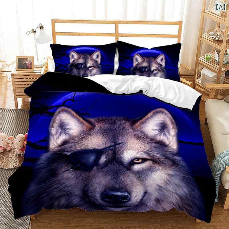 ・カテゴリ: 寝具セット・スタイル: ベッドカバータイプ・デザインテイスト: キャラクター・主な素材: 化学繊維100%・染色加工: デジタルプリント・織り方: ピーチスキン加工・カラー展開: 柄物・対応ベッドサイズ: 1.5m幅・サイズ展開: 135x200cm (2点セット), 140x210cm (2点セット), 173x228cm (2点セット), 155x220cm (3点セット), 180x210cm (3点セット), 200x200cm (3点セット), 200x229cm (3点セット), 210x210cm (3点セット), 210x245cm (3点セット), 220x230cm (3点セット), 220x260cm (3点セット), 229x229cm (3点セット), 229x264cm (3点セット) 布団カバー オオカミグモ リアルアニマル 3Dデジタルプリント ポリエステル 起毛素材 3点セット ベッドリネン 寝室 インテリア 子供部屋 掛け布団カバー シーツ 枕カバー 5,488 ~