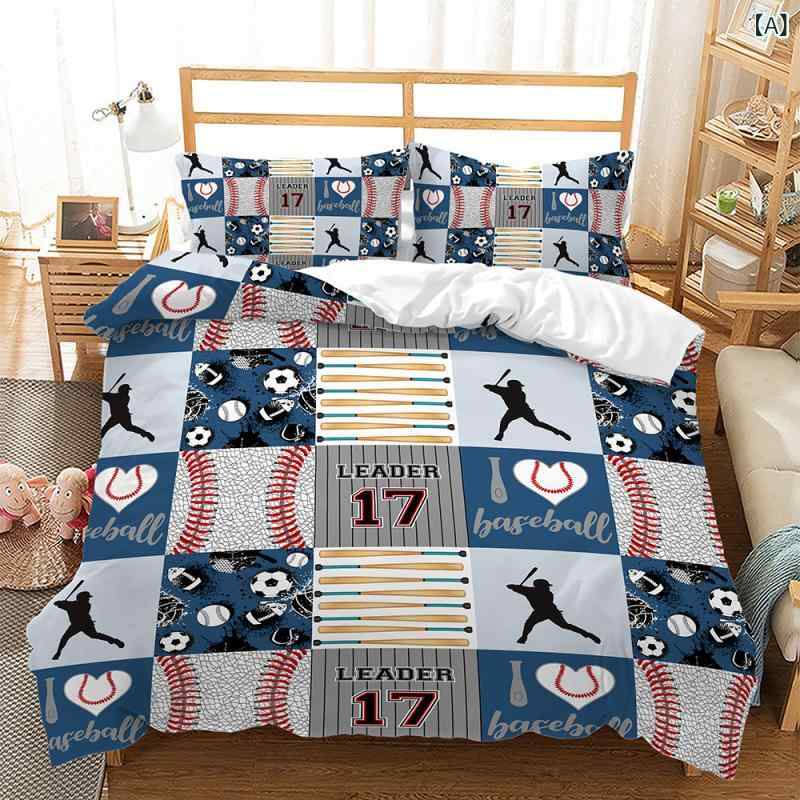 ・カテゴリ: 寝具・印染工芸: デジタルプリント・織造工芸: ピーチスキン加工・カラー: マルチカラー・主な素材: 化学繊維100%・スタイル: ベッドカバー式・テイスト: カートゥーン・対応ベッドサイズ: 150cm幅・サイズ展開: 135cm×200cm (2点セット), 140cm×210cm (2点セット), 173cm×228cm (2点セット), 155cm×220cm (3点セット), 180cm×210cm (3点セット), 200cm×200cm (3点セット), 200cm×229cm (3点セット), 210cm×210cm (3点セット), 210cm×245cm (3点セット), 220cm×230cm (3点セット), 220cm×260cm (3点セット), 229cm×229cm (3点セット), 229cm×264cm (3点セット)・セット内容: 3点セット 寝具 バスケットボール スポーツ 3点セット 布団カバー ピローケース 3D デジタルプリント ピーチスキン加工 ポリエステル 化学繊維 吸湿速乾 肌触り快適 子供部屋 男の子 5,488 ~