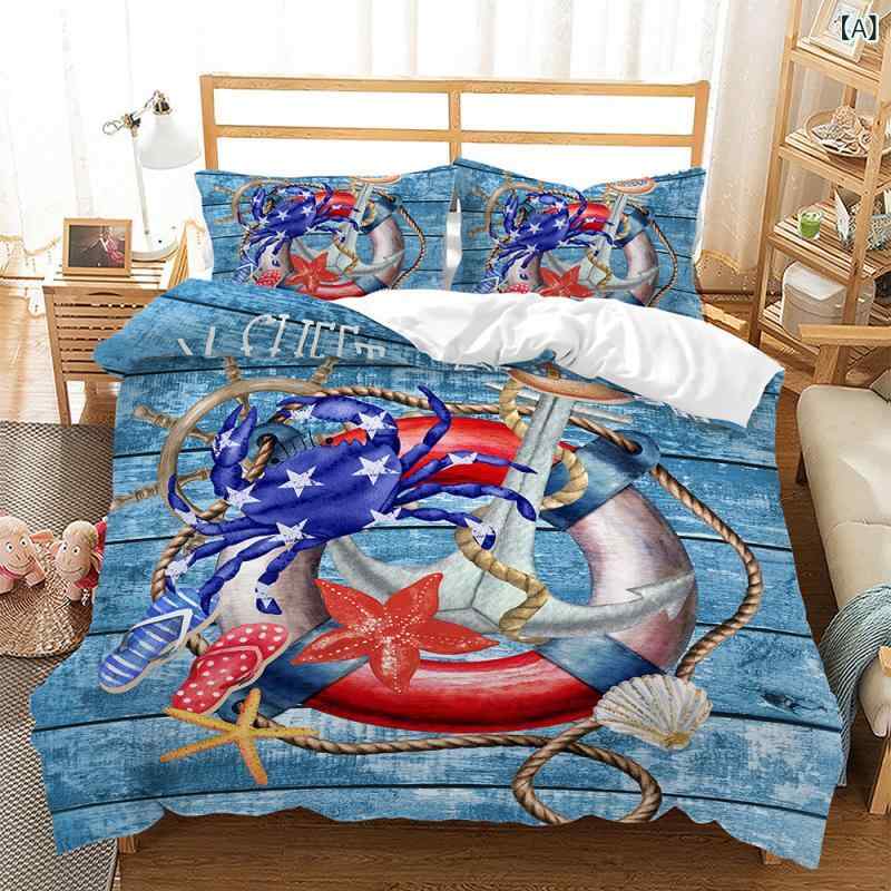 ・カテゴリ: 寝具・スタイル: カートゥーンアニメ・タイプ: フラットシーツ・セット内容: 3点セット・主な素材: ポリエステル・カラー: マルチカラー・印染加工: 活性染料・織り方: ピーチスキン加工・加工: キルティング・サイズ展開: 135x200cm (2点セット), 140x210cm (2点セット), 175x218cm (3点セット), 200x200cm (3点セット), 210x210cm (3点セット), 200x230cm (3点セット), 228x228cm (3点セット), 240x220cm (3点セット), 260x230cm (3点セット), 150x200cm (2点セット), 180x220cm (3点セット) 寝具 布団カバー 航海柄 アンカーモチーフ マリンテイスト 3Dデジタルプリント アニメ風 3点セット ポリエステル ピーチスキン加工 やわらか肌触り 微起毛 キッズ 子供部屋 5,516 ~