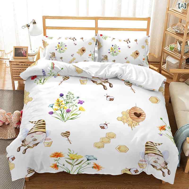 ・スタイル: シーツタイプ・柄: カートゥーンアニメ・主な素材: ポリエステル繊維・印染工芸: 活性染め・織造工芸: 起毛・加工: キルティング・カラー展開: 花柄・対応ベッドサイズ: 180cmベッド・サイズ展開: 135x200cm (2点セット), 140x210cm (2点セット), 150x200cm (2点セット), 175x218cm (3点セット), 180x220cm (3点セット), 200x200cm (3点セット), 200x230cm (3点セット), 210x210cm (3点セット), 228x228cm (3点セット), 240x220cm (3点セット), 260x230cm (3点セット) 布団カバー キッズ 子供用 ミツバチ 蜂の妖精 キャラクターイラスト デジタルプリント かわいい ポリエステル 寝具セット 起毛加工 柔らかい 肌触り良い 3点セット 2点セット 5,516 ~
