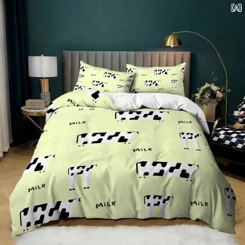 ・カテゴリ: 寝具・スタイル: モダンシンプル・印染技術: 活性染料・織造技術: ピーチスキン加工・色: 花柄・対応ベッドサイズ: 1.8m・サイズ展開: 135x200cm (2点セット), 140x210cm (2点セット), 150x200cm (2点セット), 175x218cm (3点セット), 180x220cm (3点セット), 200x200cm (3点セット), 200x230cm (3点セット), 210x210cm (3点セット), 228x228cm (3点セット), 240x220cm (3点セット), 260x230cm (3点セット)・セット内容: 2点セット, 3点セット 寝具カバーセット 3D デジタルプリント 漫画風 牛柄 かわいい おしゃれ 掛け布団カバー 枕カバー 3点セット ポリエステル やわらか起毛加工 モダン シンプル 速乾 寝室インテリア 模様替え 5,516 ~