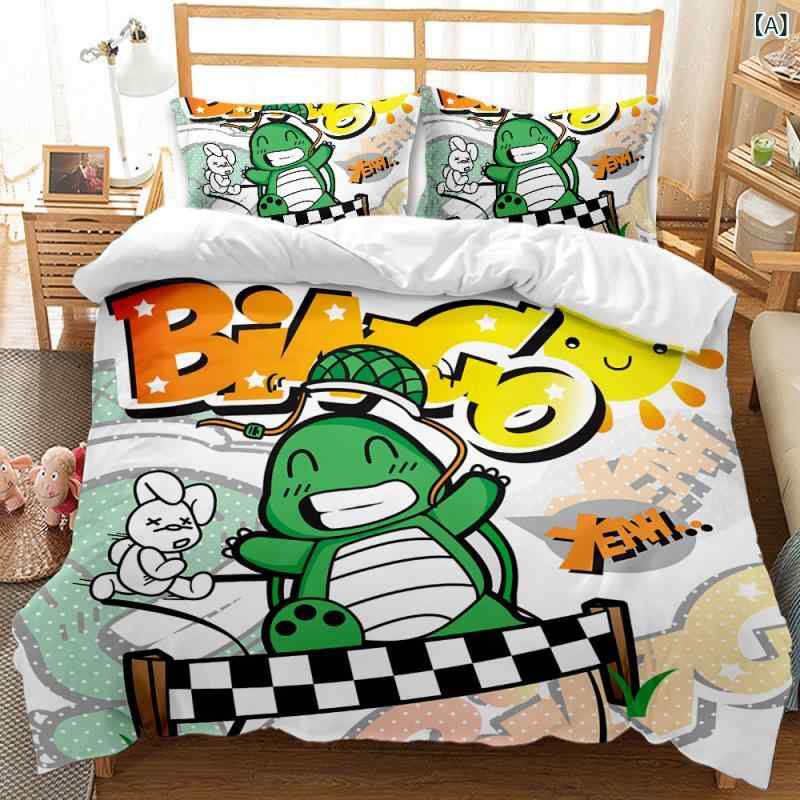 ・カテゴリ: フラットシーツ・主な素材: ポリエステル100%・染色加工: 活性染料・織り方: 磨毛加工(ピーチスキン)・デザイン: カートゥーン・シリーズ: 映画・ドラマ同款・カラー展開: 総柄・対応ベッドサイズ: 180cm幅ベッド・セット内容: 2点セット、3点セット・サイズ展開: 135×200cm(2点セット), 140×210cm(2点セット), 150×200cm(2点セット), 175×218cm(3点セット), 180×220cm(3点セット), 200×200cm(3点セット), 200×230cm(3点セット), 210×210cm(3点セット), 228×228cm(3点セット), 240×220cm(3点セット), 260×230cm(3点セット) 布団カバーセット 恐竜キャラクター かわいい 3D デジタルプリント 活性染料 ポリエステル ピーチスキン加工 肌触りなめらか 洗える 速乾 シワになりにくい 快適 寝具カバー 3点セット 5,516 ~