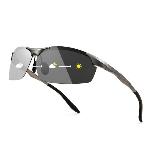 晴れマーク【調光サングラス】調光サングラスが『紫外線の強さよりレンズの色が変わってくる』、紫外線に反応して色がが変わるグラスで屋外の陽に当たるところでは徐々にレンズに色が付き、室内に入ると徐々にレンズカラーが薄くなり、レンズの素材にハロゲンと銀を混ぜ、紫外線に当たると、ハロゲンと銀が分解し、そのレンズの色が濃くなり、こういう化学の利用より、調光サングラスになります。 紫外線が弱いとレンズの変化が時間がかかりますので、ご注意ください。 晴れマーク【偏光レンズ】クリアな視界を与える偏光サングラス、道路標識がギラツキや乱反射、道路面が反射して白線が見えない、ランニング中、下方からの光の照り返しで目が疲れる、ゴルフでグリーン上の起伏が把握しにくい様々なところを偏光サングラスでその光がしっかりカットでき、目に優しく保護です。 晴れマーク【超軽量&スッキリデザイン】通常のメガネと比べて、一体式の鼻パットはフィット感をより高めたほか、鼻へ圧迫が軽減されます。