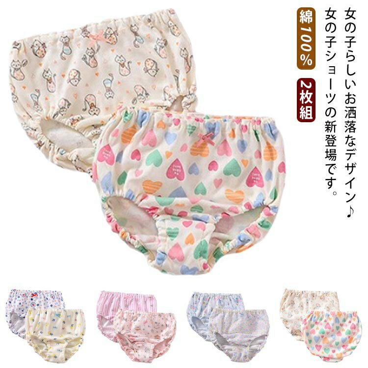 子供用 幼稚園 保育園 幼児 小学生 アンダーウェア 女児 女の子 ショーツ インナー 肌着 綿100% 2枚組 パンツ 可愛い 下着 1,940 ~