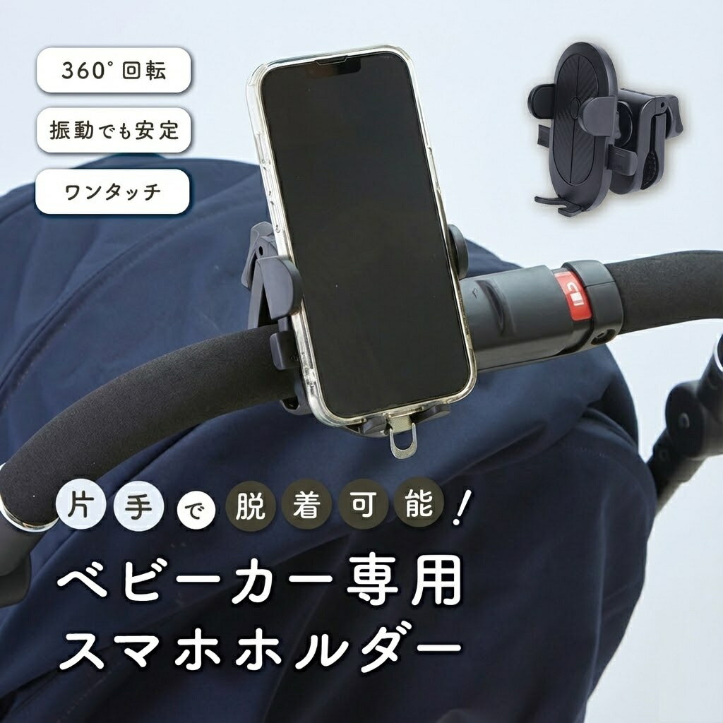 メーカー希望小売価格はメーカーカタログに基づいて掲載しています ブランド sezu 商品紹介 赤ちゃんから目を離せないお出かけ中でも、 片手で簡単にスマホを装着・取り外しできるベビーカー専用スマホホルダーです。 ワンタッチ操作でしっかり固定でき、 ガタガタ道でも安心の防振・滑り止め設計。 スマホを優しく包み込み、大切な端末を守ります。 主な特長 片手ワンタッチ操作 抱っこ中でもラクに着脱 360度自由回転 ナビ・動画視聴も見やすい角度に調整可能 防振・滑り止めクランプ ABS素材+ソフトゴムで安定固定 マルチ対応 ベビーカー/自転車/買い物カート/車椅子にも使用可能 幅広い機種に対応 4.0〜7.2インチ、ケース付きスマホもOK こんな方におすすめ 赤ちゃんとのお散歩・外出が多い方 ナビや音楽、動画を安全に使いたい方 ベビーカー卒業後も長く使えるスマホホルダーを探している方 スペック 素材:ABS 対応サイズ:4.0〜7.2インチ カラー:ブラック 取付方法:工具不要・簡単クランプ式 子育てを経験した私たちが、本当に欲しかった機能だけを厳選。 あなたの毎日をやさしく支える、安心設計です。 生産国 中国製 made in China(メイド イン チャイナ) designed in japan(ジャパン) ※こちらの商品は日本のデザインチームで企画された商品です。 商品詳細 ベビーカー用スマホホルダー 片手操作 ワンタッチ装着 360度回転 防振設計 滑り止め固定 自転車対応 スマホスタンド iPhone対応 Android対応 赤ちゃんお出かけ用品 ベビーカー スマホホルダー 片手操作 ワンタッチ 360度回転 防振 滑り止め 自転車対応 iPhone Android対応 スマホスタンド 1,850 ~
