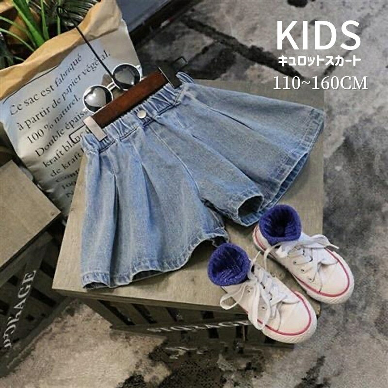 ハートボタン キュロットスカート ショートパンツ 半ズボン ストレッチツイル デニム ボトムス 女の子 ニッセン キッズ 子供服 子ども こども QUNTSTYLE 110 120 130 140 150 160cm 秋 春服 1,490 ~
