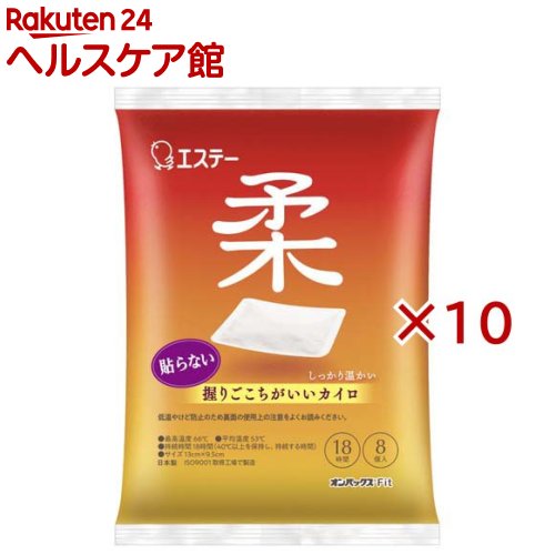 お店TOP>衛生医療>温熱用具>カイロ>カイロ>貼らないオンパックス フィット 握りごこち レギュラーサイズ 日本製 18時間持続 (8個入×10セット)【貼らないオンパックス フィット 握りごこち レギュラーサイズ 日本製 18時間持続の商品詳細】●柔らかく、手触り抜群なカイロです。 ●しっかりとした温感が18時間持続します。 ●用途:カイロ 使い捨て オンパックス Fit お腹 レギュラー【使用方法】「切り口」袋を開けると発熱が始まります。 ★保存方法・直射日光をさけ、涼しい所に保存する。 ・幼児の手の届くところに置かない。 ・袋に傷をつけないように保存する。 【成分】原材料名/鉄粉・水・活性炭・バーミキュライト・木粉・塩類・吸水性樹脂【規格概要】・最高温度66度・平均温度53度・持続時間18時間(40度以上を保持し、持続する時間)※表示の最高温度・持続時間は日本産業規格、平均温度は東京都条例に基づく測定値ですので人体にてご使用の場合は若干の差異があります。 ・ISO9001 取得工場で製造・品質には万全を期していますが、万一不良品があった場合は、お買い上げ月日と店名を書きそえて、現品と袋を弊社までお送りください。 代替品とお取り替えいたします。 【注意事項】・低温やけど防止のため裏面の使用上の注意をよくお読みください。 ★使用不可:就寝時、こたつやふとんの中、暖房器具至近・就寝時は使用しない。 ・糖尿病など温感や血行に障がいのある方は低温やけどの恐れがあるため、医師に相談する。 ・子ども、身体の不自由な方、皮フの弱い方、初めて使う方は特に注意して使用する。 ・肌に直接あてないようにする。 ・下着など薄い衣類で使用する場合は注意する。 ・熱いと感じたらすぐに取り出す。 すぐに取り出せない状態で使用しない。 ・こたつやストーブなどの暖房器具との併用や至近での使用はしない。 ・カイロを押さえつけるなど、血行を妨げる使い方はしない。 ・万一水ぶくれなど、やけどの症状が現れた場合はすぐに医師に相談する。 【原産国】日本【発売元、製造元、輸入元又は販売元】エステー株式会社※説明文は単品の内容です。 リニューアルに伴い、パッケージ・内容等予告なく変更する場合がございます。 予めご了承ください。 ・単品JAN:4902899455168エステー株式会社東京都新宿区下落合1-4-100120-145-230広告文責:楽天グループ株式会社電話:050-5577-5042[温熱用品] 貼らないオンパックス フィット 握りごこち レギュラーサイズ 日本製 18時間持続(8個入×10セット) 3,410 円
