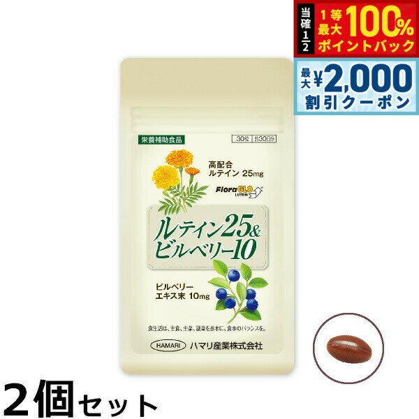【15日限定!2000円OFFクーポン&抽選で最大10000ptバック】ハマリの健康食品 ルテイン25&ビルベリー10 30粒×2個セット【送料無料】 国産 サプリメント アイケア 目の健康 8,640 円