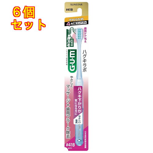 6個セット24個セット※商品リニューアル等によりパッケージ及び容量は変更となる場合があります。 ご了承ください。 ※この商品は取寄せ商品です。 発送まで、ご注文確認後最長20日頂きます。 ※取り寄せ商品の為、ご注文後でも、メーカー欠品や終売となっている場合はキャンセルとさせて頂きます。 先端が3本に分かれた独自の超極細(弾力毛)が歯周プラークを除去しながらも、ハグキへのあたり心地の良さを実現。 ゴム状の「歯周ケア毛」(中央列着色部)を採用し、歯周病などによってハグキが下がり露出した歯の根元にもやさしく当たるため、ブラッシング時に痛みがある方もお使い頂けます。 歯科衛生士との共同開発ハンドルは奥歯に届きやすい設計。 4列超コンパクトヘッド。 やわらかめ。 名称 歯ブラシ 内容量 1本 使用方法・用法及び使用上の注意 ・歯みがき後は毛の根元まで充分洗い落とし、水をよく切って風通しのよい所に保管してください。 ・変色、変形の恐れがありますので、塩素系殺菌剤、熱湯、油は使用しないでください。 ・軽い力で小刻みに磨きましょう。 力の入れすぎは、ハグキを傷つける原因にもなります。 保管および取扱い上の注意 ・歯みがき後は毛の根元まで充分洗い落とし、水をよく切って風通しのよい所に保管してください。 原材料 ・PET、ポリエステル、ポリエーテル、飽和ポリエステル樹脂、ナイロン 発売元、製造元、輸入元又は販売元、消費者相談窓口 サンスター株式会社大阪府高槻市朝日町3-1電話:0120-008241 原産国 日本 商品区分 歯みがき用品 広告文責 株式会社レデイ薬局 089-909-3777薬剤師:池水 信也,, GUM(ガム)ハグキラボ デンタルブラシ ♯418 4列超コンパクト やわらかめ 1本×12個※取り寄せ商品 返品不可 4,347 円