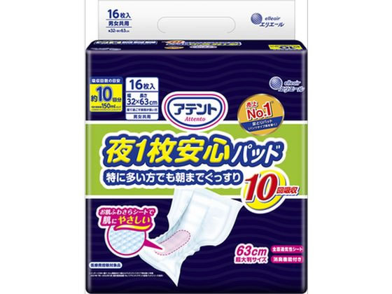 【商品説明】肌への接触面積を低減する「お肌ふわさらシート」で逆戻りを防ぐから、肌にやさしい。 超大判63cmの尿がモレやすい部分を全て包む安心サイズ。 全面通気性シートでさらっと快適。 たっぷり1500mlの吸収力!尿量の特に多い方でも一晩中安心の吸収力です。 バックシートに、前後が分かりやすく体の中心に合わせやすい「矢印センターライン」入り。 医療費控除対象品【仕様】●サイズ:幅32×長さ63cm●材質:表面材/ポリオレフィン系不織布、吸水材/綿状パルプ・吸収紙・高分子吸水材、防水材/ポリエチレンフィルム、伸縮材/ポリウレタン、結合材/スチレン系エラストマー合成樹脂材●注文単位:1パック(16枚) 。 【備考】※メーカーの都合により、パッケージ・仕様等は予告なく変更になる場合がございます。 【検索用キーワード】大王製紙 ダイオウセイシ だいおうせいし アテント夜1枚安心パッド10回吸収 アテント夜1枚安心パッド10回吸収16枚 アテント 夜1枚安心パッド 16枚 アテントシリーズ あてんとしりーず 1パック 16枚 32×63 パッドタイプ ぱっどたいぷ 男女共用 男女兼用 大人用失禁用品 尿取りパッド 尿とりパッド 介護用品 介護用オムツ 介護用パッド 高齢者 介助用品 介護・介助用品 排泄ケア X037SRモレを防いで朝までぐっすり。 お肌ふわさらシートで肌にやさしい 大王製紙 アテント 夜1枚安心パッド 10回吸収 16枚 尿とりパッド 排泄ケア 介護 介助 2,204 円