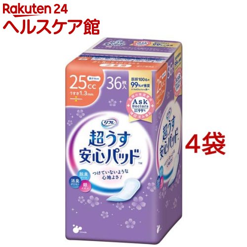 お店TOP>日用品>生理用品>尿もれ用シート・パッド>尿もれ用シート・パッド 微量・少量用>リフレ 超うす安心パッド 少量用 25cc【リブドゥ】 (36枚入*4個セット)【リフレ 超うす安心パッド 少量用 25cc【リブドゥ】の商品詳細】●医療費控除対象品●超うす1.3mmで つけていないような心地よさ!●超うすなのに、安心の吸収力。 ●超うす吸収体で、驚きのうすさと高い吸収性能を両立。 ●圧倒的なつけ心地の良さを実感していただけます。 ●お肌へのやさしさにも配慮:弱酸性さらさら素肌シートを採用し、さらっとしたつけ心地になりました。 ●トリプル効果でしっかり消臭:3方向から気になるにおいに対処するので、人と会うときも安心です。 ●コンパクトで携帯に便利:超うす型のパッドなので、ポーチにもすっきり収まります。 ●携帯時や使用時の抵抗感を和らげる女性らしいデザイン。 【規格概要】品名:大人用紙おむつ(軽失禁用)★素材表面材:ポリエチレン/ポリエステル不織布吸水材:高分子吸収材/吸水紙防水材:ポリエチレンフィルム止着材、結合材:スチレン系エラストマーなど★製品サイズ寸法:巾8.5cm*長さ19cm薄さ:1.3mm吸収量:25cc【注意事項】★使用上の注意・汚れたパッドは早くとりかえてください。 ・テープは直接お肌につけないでください。 ・誤って口に入れたり、のどにつまらせることのないよう保管場所に注意し、使用後はすぐに処理してください。 ★使用後の処理・汚れた部分を内側にして丸め、不衛生にならないよう処理してください。 ・トイレにパッドを捨てないでください。 ・使用後のパッドの破棄方法は、お住まいの地域のルールに従ってください。 ・外出時に使ったパッドは持ち帰りましょう。 ★保管上の注意・開封後は、ほこりや虫が入らないよう、衛生的に保管してください。 ★尿モレには尿ケア専用品をお使いください。 ※生理用ナプキンではありません。 ※経血の吸収には不向きです。 【原産国】日本【ブランド】リフレ安心パッド【発売元、製造元、輸入元又は販売元】リブドゥコーポレーション※説明文は単品の内容です。 リニューアルに伴い、パッケージ・内容等予告なく変更する場合がございます。 予めご了承ください。 ・単品JAN:4904585029165リブドゥコーポレーション541-0048 大阪府大阪市中央区瓦町1-6-10 JPビル0120-271-361広告文責:楽天グループ株式会社電話:050-5577-5042[大人用紙おむつ 失禁用品/ブランド:リフレ安心パッド/] リフレ 超うす安心パッド 少量用 25cc【リブドゥ】(36枚入*4個セット)【リフレ安心パッド】 3,170 円
