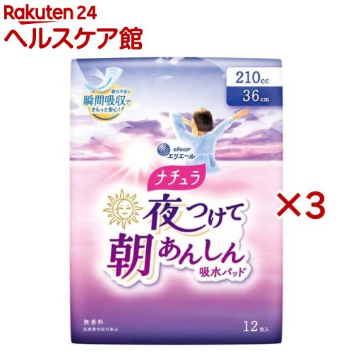 お店TOP>日用品>生理用品>尿もれ用シート・パッド>尿もれ用シート・パッド全部>ナチュラ 夜つけて朝あんしん 吸水パッド 36cm 210cc (12枚入×3セット)【ナチュラ 夜つけて朝あんしん 吸水パッド 36cm 210ccの商品詳細】●医療費控除対象品●瞬間吸収スリット搭載で、ドッと出た水分も素早く吸引。 表面に水分を残さないので、濡れ感軽減。 ●寝ている時もお肌の全面通気性バックシート採用。 ムレ軽減。 ●緑茶成分配合。 汗と尿のにおいをW消臭。 【注意事項】・お肌に合わない時は医師に相談してください。 ・使用後、トイレに流さないでください。 ・使用後は適切な廃棄をこころがけましょう。 【原産国】日本【ブランド】ナチュラ【発売元、製造元、輸入元又は販売元】大王製紙※説明文は単品の内容です。 リニューアルに伴い、パッケージ・内容等予告なく変更する場合がございます。 予めご了承ください。 ・単品JAN:4902011111224大王製紙102-0071 東京都千代田区富士見2丁目10番2号 飯田橋グラン・ブルーム(24階)0120-205-205広告文責:楽天グループ株式会社電話:050-5577-5042[衛生用品/ブランド:ナチュラ/] ナチュラ 夜つけて朝あんしん 吸水パッド 36cm 210cc(12枚入×3セット)【ナチュラ】 2,380 円