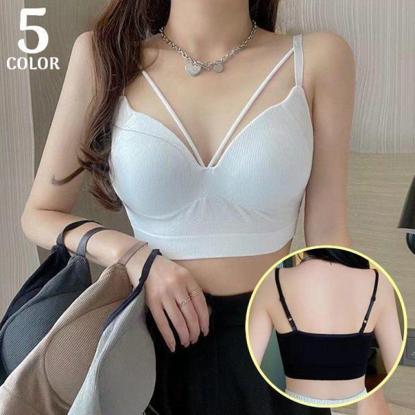 送料無料 ブラジャー レディース 3 4カップ 深Vネック ブラトップ カップ付きインナー 美背中 リブ 無地 シンプル おしゃれ 2,990 円