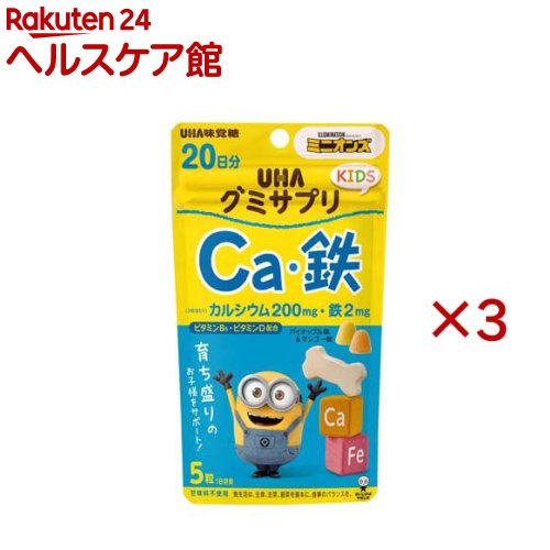 UHAグミサプリKIDS Ca・鉄 20日分(110g×3セット)【グミサプリ】[育ち盛り お子様サポート カルシウム 鉄分 20日分]
