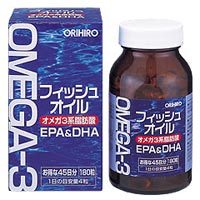 オリヒロ フィッシュオイル 180粒 イワシから抽出されたEPA・DHA含有フィッシュオイル。 魚が苦手な方や、肉食中心の食生活の方に。 発売元:オリヒロ 内容量:81.9g(455mg×180粒) サイズ(奥行×横幅×高さ):60×60×110(mm) 1日量(目安):4粒 使用の目安:約45日間 4粒に、EPA184mg、DHA124mg配合。 EPA・DHAは、オメガ3系脂肪酸の一種で、不飽和脂肪酸の一種です。 主に、青魚などに多く含まれています。 人間の体に必要な必須脂肪酸であるものの、体内では生成されないため、食事から摂取する必要があります。 昔から日本人は魚をよく食べていたため、EPA・DHAが不足することは無かったのですが、肉食が多くなっている現代人には不足しがちな栄養素となってきています。 「オリヒロ フィッシュオイル 180粒」は、イワシから抽出されたEPA・DHA含有精製魚油を、飲みやすいソフトカプセルに詰めました。 1日あたりの目安量4粒に、EPA186mg、DHA124mgを配合。 魚が苦手な方や、肉食が多い食生活の方におすすめします。 オリヒロ フィッシュオイル 180粒 のお召し上がり方 栄養補助食品として、1日1〜2パックを目安に水などでお召し上がり下さい。 炭水化物の多い食事を摂る際に一緒にお召し上がりいただくことをお勧めします。 原材料 EPA・DHA含有精製魚油、ゼラチン、グリセリン、酸化防止剤(V.E) 栄養成分表 4粒(1.82g)あたり エネルギー 13kcal たんぱく質 0.45g 脂質 1.22g 炭水化物 0.11g ナトリウム 0.6mg DHA 124mg EPA 186mg 広告文責:いいもの健康有限会社 電話番号: 042-498-2113 【お買い物マラソン!ポイント2倍!】オリヒロ フィッシュオイル 180粒 1,758 円
