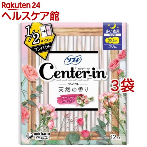 お店TOP>日用品>生理用品>生理用ナプキン>ナプキン スリムタイプ>センターインコンパクト1/2フローラル多い夜用 生理用品 夜用 (12個*3袋セット)商品区分:医薬部外品【センターインコンパクト1/2フローラル多い夜用 生理用品 夜用の商品詳細】●普通のスリムナプキンの1/2※のコンパクトサイズだから、持ち歩きにベストな上に、自然な良い香りがするナプキンです。 ※メーカー製品比●ふっくらと肌にやさしい質感の肌セレブシートを採用。 身体のカタチに合わせてフィットする構造で、スキマを作らず経血をたっぷり吸収するから、スリムでも安心です。 ●少しでも気分が上がるデザインと、癒しの香りがするセンターイン。 あなたが身も心も軽やかに過ごせるよう応援します。 【販売名】センターインt9F-17【使用方法】生理時に適宜取り替えてご使用ください。 【規格概要】表面材:ポリエステル/ポリエチレン/その他:香料/色調:白【保存方法】開封後はほこりや虫などの異物が入らないよう、衛生的に保管してください。 【注意事項】お肌に合わないときは医師に相談してください。 使用後のナプキンは個別ラップに包んで専用箱に捨ててください。 トイレに流さないでください。 【原産国】日本【ブランド】ソフィ センターインコンパクト【発売元、製造元、輸入元又は販売元】ユニ・チャーム※説明文は単品の内容です。 商品に関するお電話でのお問合せは、下記までお願いいたします。 受付時間9:30-17:00(月-金曜日、祝日除く)ベビー用品:0120-192-862生理用品:0120-423-001軽失禁・介護用品(ライフリー):0120-041-062生活用品(化粧パフ・一般ウェットティッシュ・お掃除用品など):0120-573-001衛生用品(マスク):0120-011-529ペットケア用品:0120-810-539リニューアルに伴い、パッケージ・内容等予告なく変更する場合がございます。 予めご了承ください。 ・単品JAN:4903111312993ユニ・チャーム東京都港区三田3-5-19住友不動産三田ガーデンタワー広告文責:楽天グループ株式会社電話:050-5577-5042[生理用品/ブランド:ソフィ センターインコンパクト/] センターインコンパクト1/2フローラル多い夜用 生理用品 夜用(12個*3袋セット)【wmc_3】【ソフィ センターインコンパクト】[生理用品] 1,076 円