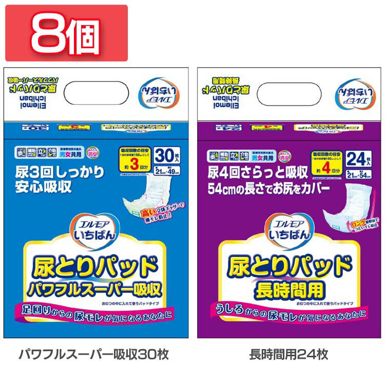 ◆立体ギャザー付き。 ◆ズレ止めテープ付き。 ◆安心の消臭加工。 ※リニューアルに伴い、パッケージ・内容等予告なく変更する場合がございます。 予めご了承ください。 【パワフルスーパー吸収30枚】●おむつサイズ:21×49cm●排尿のめやす:約3回分【長時間用24枚】●おむつサイズ:21×54cm●排尿のめやす:約4回分(検索用:尿取りパッド 介護用 尿取り パッド 消臭 吸収シート 長時間 大人用 トイレ介助 排泄介助 介護 日本製 エルモア 4971633715240 4971633715226)最強翌日配送対象商品に関するご案内 最強翌日配送対象商品・対象地域に該当する場合は最強翌日配送マークがご注文カゴ近くに表示されます。 最強翌日配送可能なお支払方法は【クレジットカード、代金引換、全額ポイント支払い】のみとなります。 下記の場合は最強翌日配送対象外となります。 ・15点以上ご購入いただいた場合 ・時間指定がある場合 ・ご注文時備考欄にご記入がある場合 ・決済処理にお時間を頂戴する場合 ・郵便番号や住所に誤りがある場合 ・最強翌日配送対象外の商品とご一緒にご注文いただいた場合 ・お届け先住所文字数が40文字以上の場合 【8個】尿取りパッド 介護用 尿取り エルモアいちばん 尿取りパッド 尿取りパッド 介護用 尿取り パッド 消臭 吸収シート 長時間 大人用 トイレ介助 排泄介助 介護 エルモア エルモア パワフルスーパー吸収30枚 長時間用24枚 5,291 円