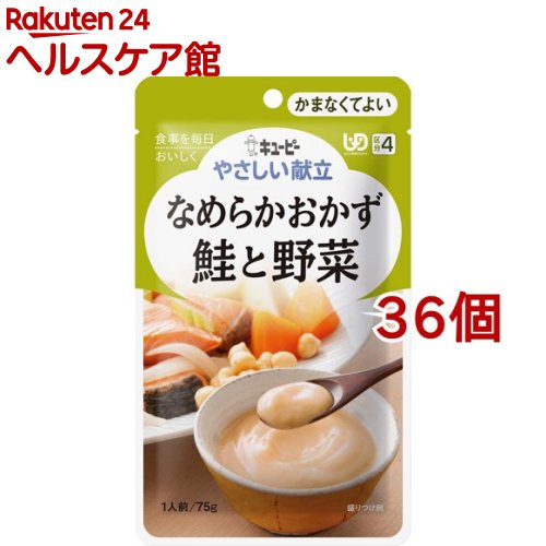 お店TOP>介護>介護食品>介護食>おかず(介護食)>キユーピー やさしい献立 なめらかおかず 鮭と野菜 (75g*36コセット)【キユーピー やさしい献立 なめらかおかず 鮭と野菜の商品詳細】鮭・玉ねぎ・セロリをじっくりと炒めて素材のおいしさをひきだし、じゃがいも・にんじん・ひよこ豆と一緒になめらかに裏ごししたおかず(介護食)です。 エネルギー52kcaL、たんぱく質2.1g、カルシウム48mg、食塩相当量0.7g配合。 ユニバーサルデザインフード:区分4(かまなくてよい)。 【召し上がり方】<お湯で温める場合>沸騰させて加熱を止めたお湯に、袋の封を切らずに入れて温めてください。 ※約1分<電子レンジで温める場合>必ず中身を深めの容器に移し、ラップをかけて温めてください。 ※500Wで約20秒※加熱不足時は10秒ずつ追加加熱してください。 ・温めすぎると状態がぬるくなります。 <ご注意>※温めた後に、中身がはねてヤケドをする恐れがありますのでご注意ください。 ※加熱後はヤケドをしないように温度を確かめてください。 ※食事介助が必要な方にご利用の際は、飲み込むまで様子を見守ってください。 【品名・名称】鮭ペースト【キユーピー やさしい献立 なめらかおかず 鮭と野菜の原材料】野菜(じゃがいも、にんじん、セロリ)、鮭(国産)、ソテーオニオン、植物油脂、ガルバンゾー(ひよこまめ)、食塩、鮭エキス、香辛料/増粘剤(加工でん粉、キサンタンガム)、調味料(アミノ酸)、卵殻カルシウム、ベニコウジ色素、(一部に卵・小麦・さけ・大豆を含む)【栄養成分】1袋(75g)当たりエネルギー:52kcal、たんぱく質:2.1g、脂質:3.3g、炭水化物:3.7g(糖質:3.2g、食物繊維:0.5g)、食塩相当量:0.7g、カルシウム:48mg殺菌方法:気密性容器に密封し、加圧加熱殺菌【アレルギー物質】卵・小麦・さけ・大豆【保存方法】直射日光を避け、常温で保存してください。 【注意事項】・乳幼児向け商品ではありません。 ・この商品はレトルトパウチ商品です。 ・黒い粒は原材料の一部です。 【原産国】日本【ブランド】キューピーやさしい献立【発売元、製造元、輸入元又は販売元】キユーピー※説明文は単品の内容です。 リニューアルに伴い、パッケージ・内容等予告なく変更する場合がございます。 予めご了承ください。 ・単品JAN:4901577056758キユーピー182-0002 東京都調布市仙川町2-5(お客様相談室)0120-14-1122広告文責:楽天グループ株式会社電話:050-5577-5042[介護食/ブランド:キューピーやさしい献立/] キユーピー やさしい献立 なめらかおかず 鮭と野菜(75g*36コセット)【キューピーやさしい献立】 6,998 円